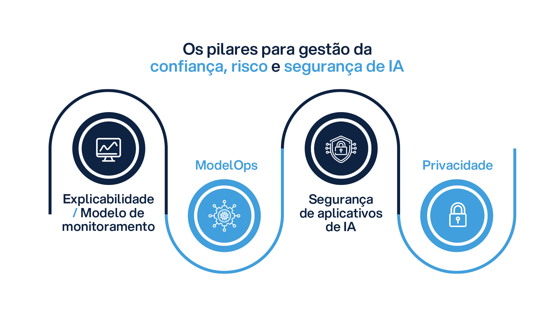 A implementação bem-sucedida do AI TRiSM depende da integração de quatro pilares fundamentais: